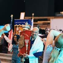 The Torah is processed with rejoicing, dancing, and musical praise. The "Parsha" or weekly Torah "portion" is read from the Torah in Hebrew and translated into English.