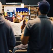 Our service is a unique blend of the ancient, traditional synagogue, with joyful, upbeat, and modern praise. We believe synagogue should be orderly, but also joyful, and fun for all ages, including for families and for the youth, which is a major focus for us.